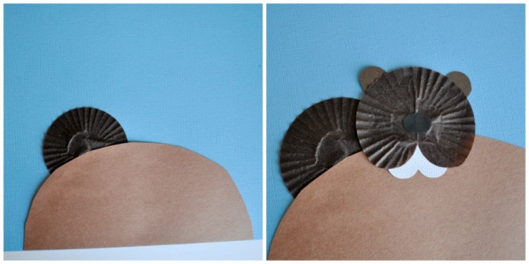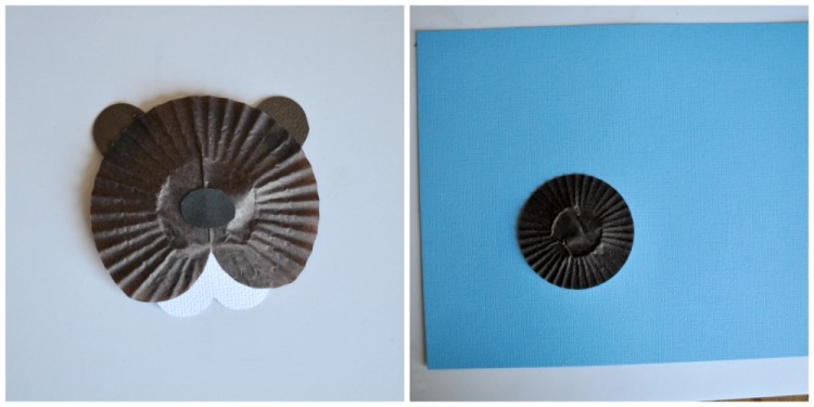 Glue your other brown cupcake liner onto your blue cardstock paper. You can see from the picture where I positioned mine.